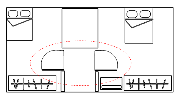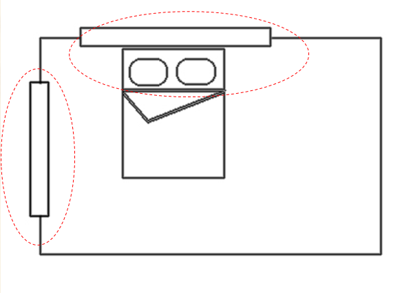 解決方法:在床頭的地方放置床頭櫃,來避開床頭直接在樑下。